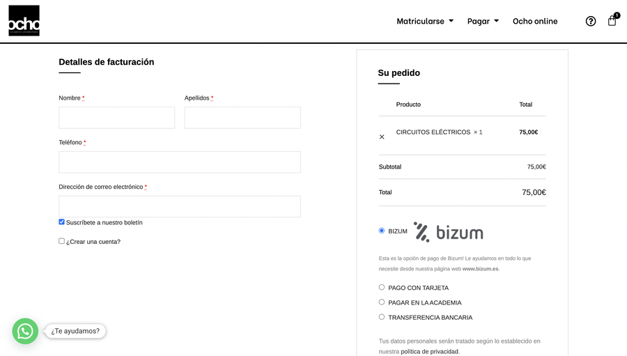 Haz clic en «Añadir al carrito», y te redireccionará a la página de finalizar compra.